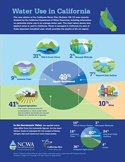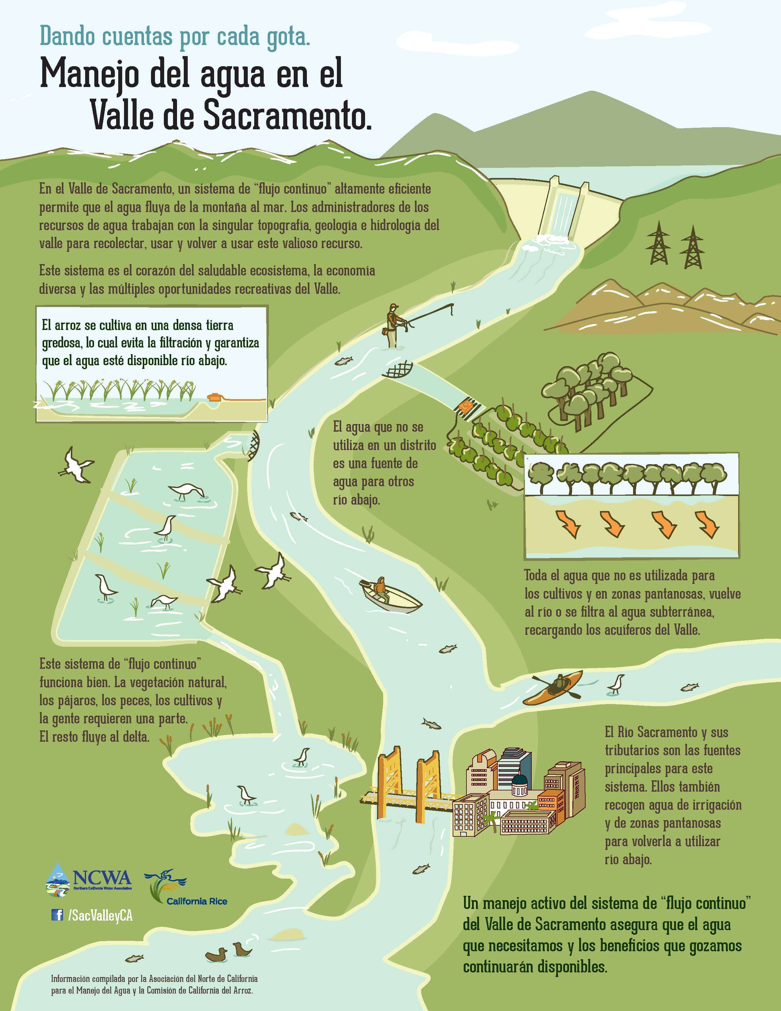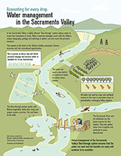 The Sacramento Valley acts as a funnel that focuses water from the Sierra Nevada, Cascade and Coast Range into a highly managed, flow-through, system that protects people from floods and makes water supplies available at the right time, so that the same water can serve multiple beneficial purposes for the natural and working landscapes as it flows through the Valley.